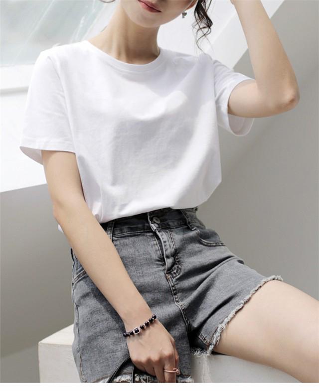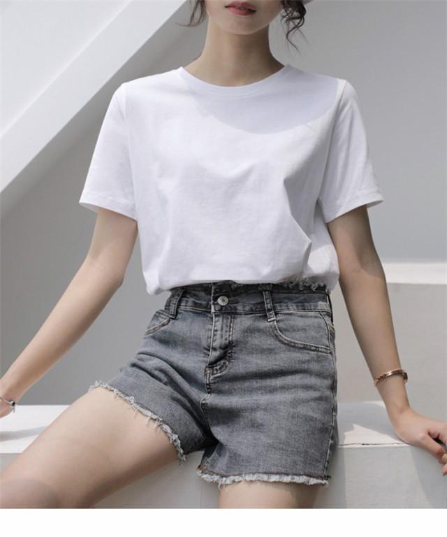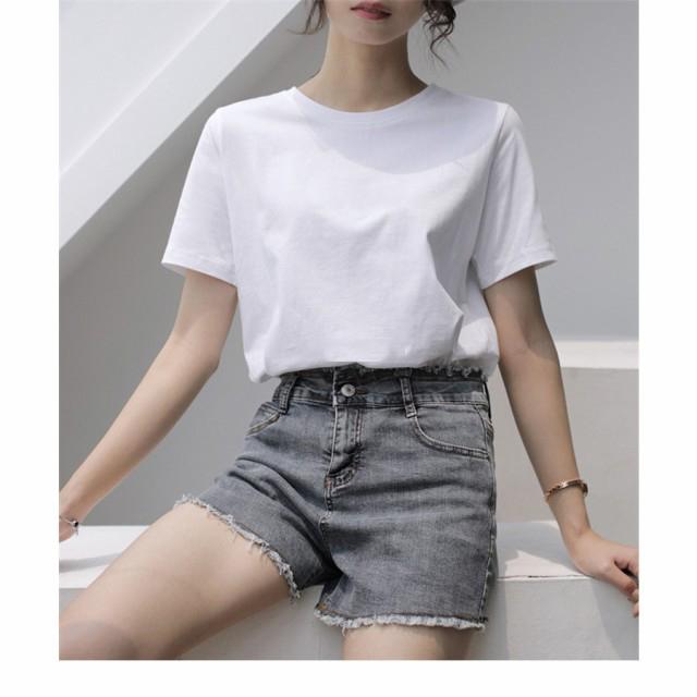 レディース シャツ 半袖 夏 tシャツ 無地 綿100% 白 カットソー シャツ 2021