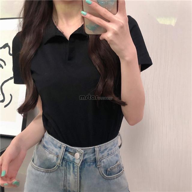 tシャツ 夏 Vネック 半袖 シャツ ゆったり ポロシャツ tシャツ 綿 2021 無地