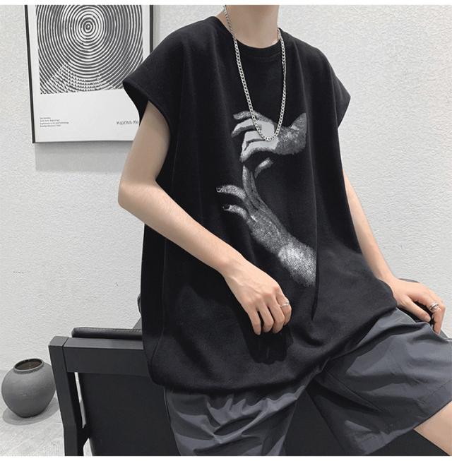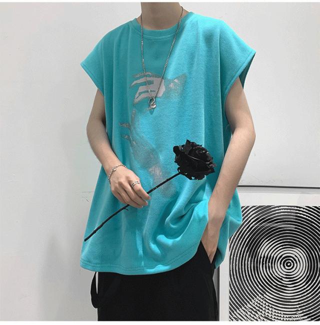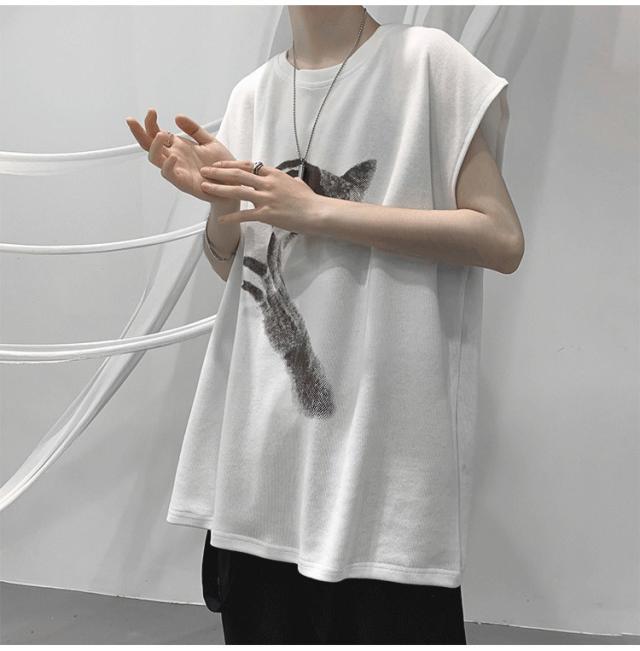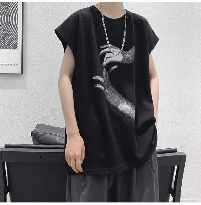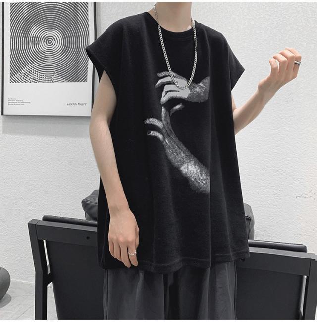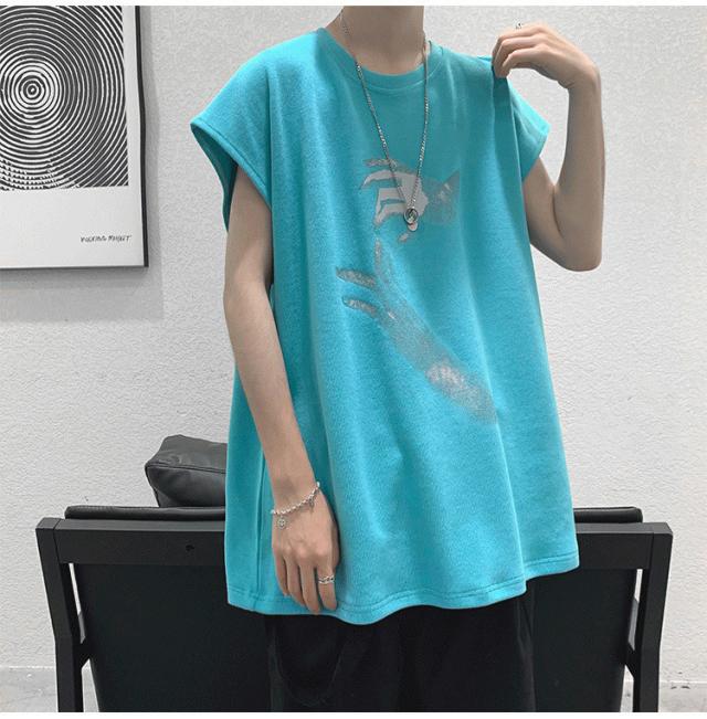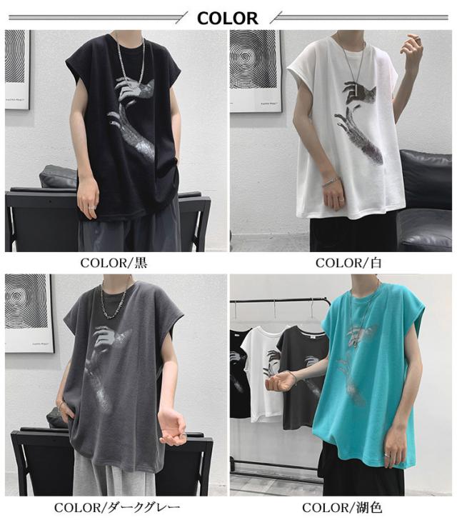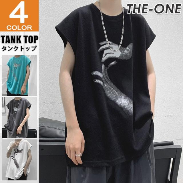 メンズ タンク タンクトップ タンクトップ インナー ノースリーブ クルーネック プリント ベスト
