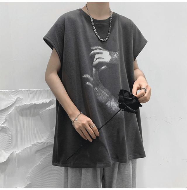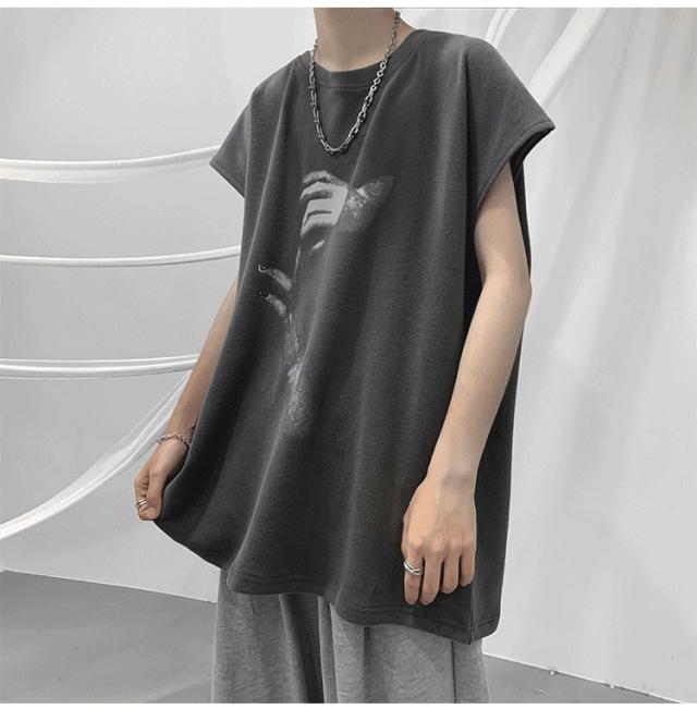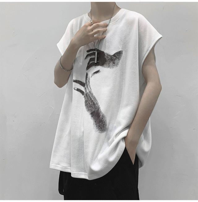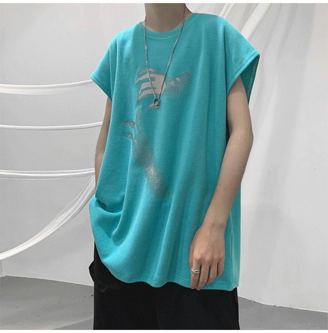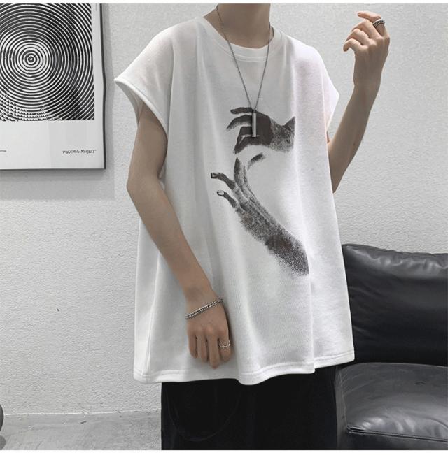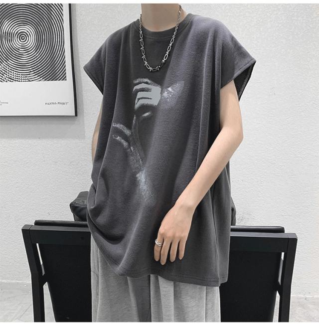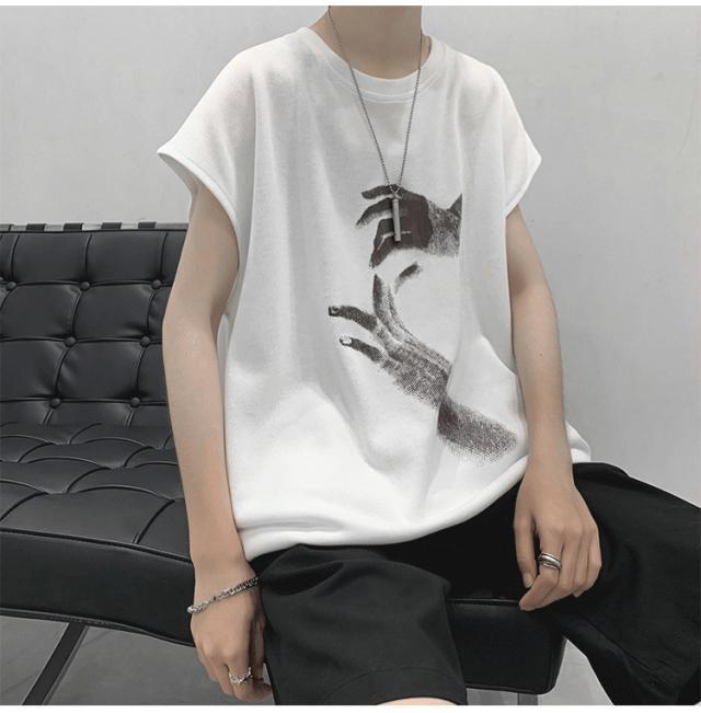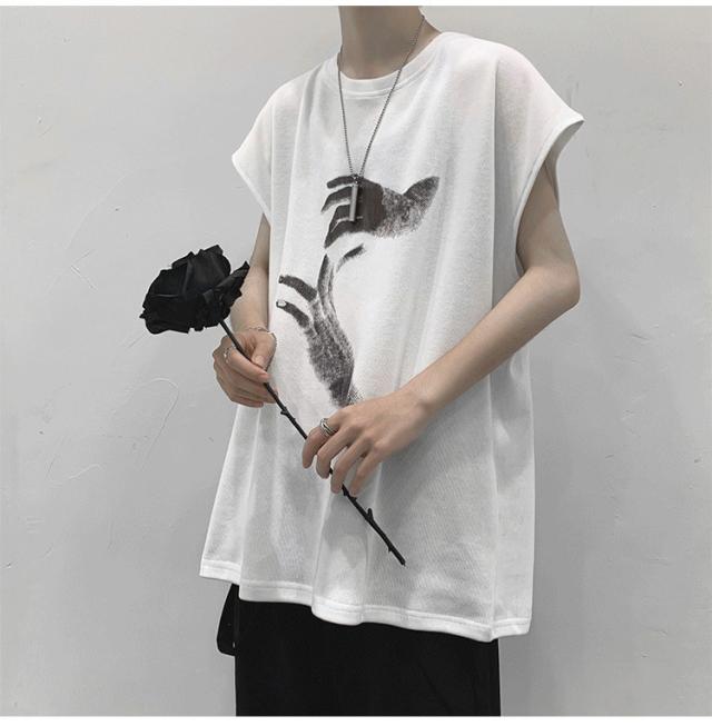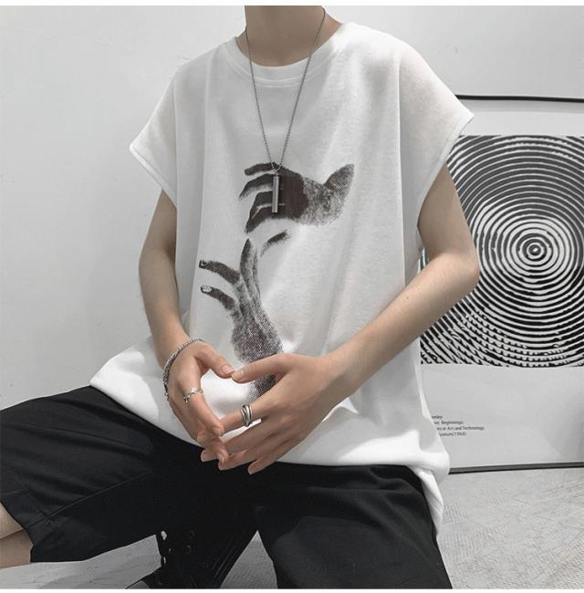 メンズ タンク タンクトップ タンクトップ インナー ノースリーブ クルーネック プリント ベスト