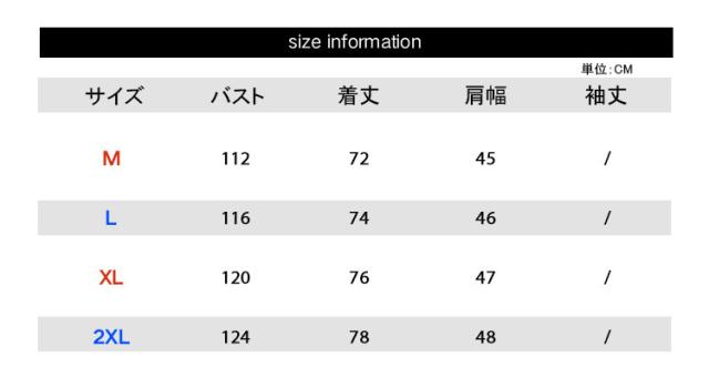 | サイズについての説明 | サイズ:M/L/XL/2XL |
