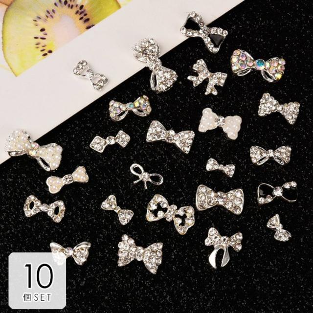 ビジュー パーツ デコパーツ ネイル セルフネイル ネイル ラインストーン リボン 大人可愛い キラキラ キュート 春ネイル 小さめ シルバー