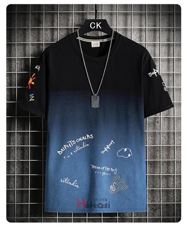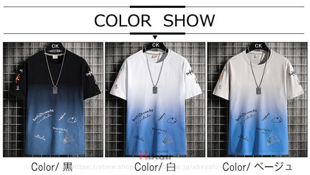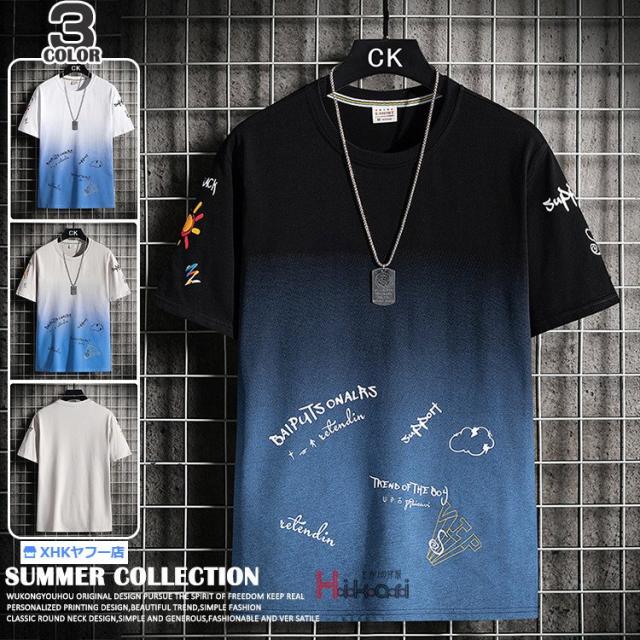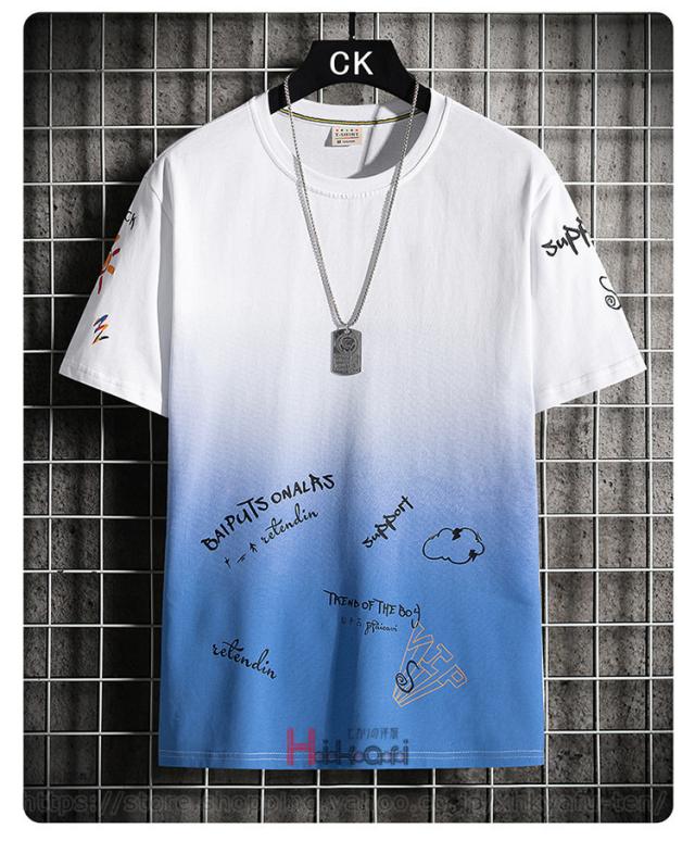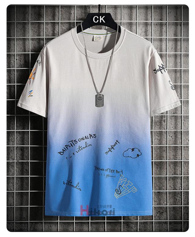 Tシャツ グラデーション メンズ プリントTシャツ 半袖 おしゃれ カットソー 夏物 カジュアルTシャツ