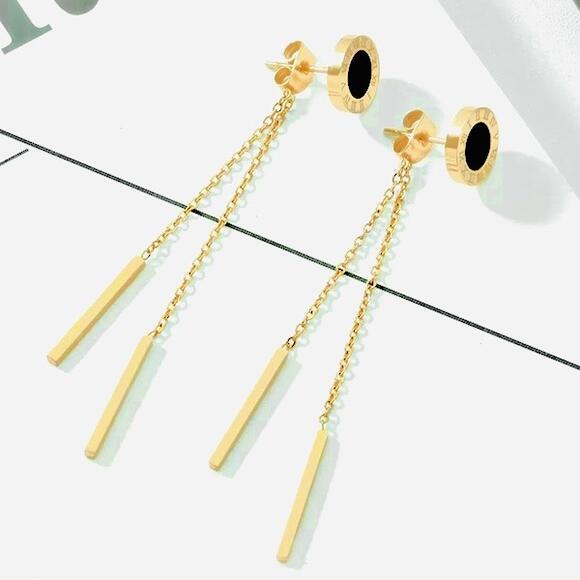 おしゃれ かわいい なオニキスローマ数字 2way チェーンドロップピアス 揺れる スタッドピアス 、大切な人へのプレゼントにもピッタリです♪