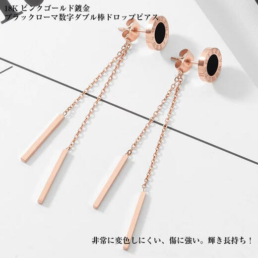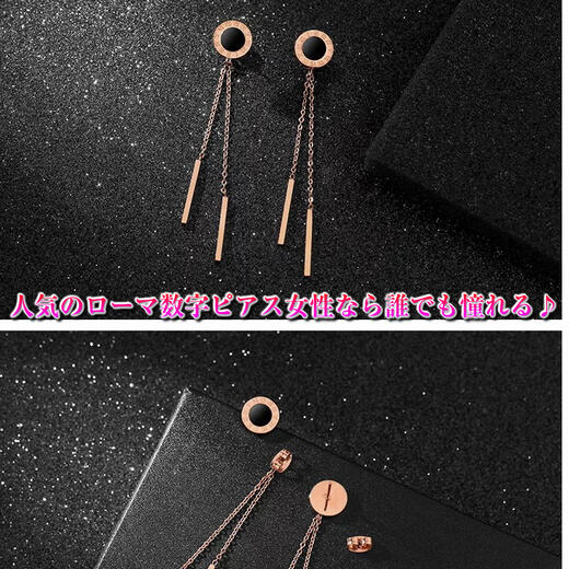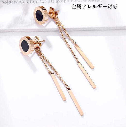 - アレルギー体質のためサージカルステンレスのピアスをググっていたらヒットしました。 色もピンクゴールドで探していたので理想的でしたし、オニキスローマ数字のアクセサリーは以前から気になっていたのでラッキーでした。 思っていたよりとても可愛いく、大きさもちょうどいいと思います。 ただ…揺れるチャームがキャッチの方に付いているので脱着が少々面倒です。爪が長いとイラッとしてしまうかもです^ ^;