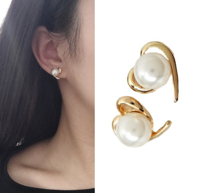 ■ロマンチックなハートと真珠のスタッドピアス、流れるようなシルエットのハートにちょこんと乗ったパールがかわいい!!