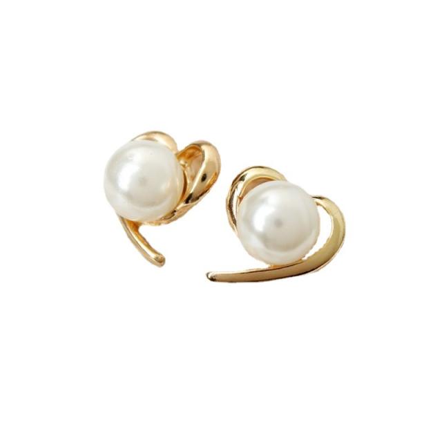 ■ロマンチックなハートと真珠のスタッドピアス、流れるようなシルエットのハートにちょこんと乗ったパールがかわいい!!