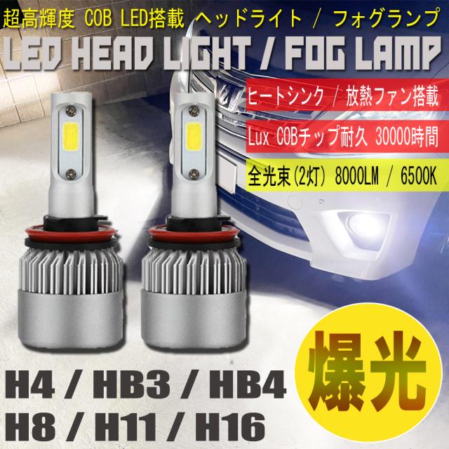 H4 HB3 HB4 H8 H11 H16 LED フォグランプ ヘッドライト 6500L 8000LM アルミヒートシンク 冷却ファン搭載 IP65防水