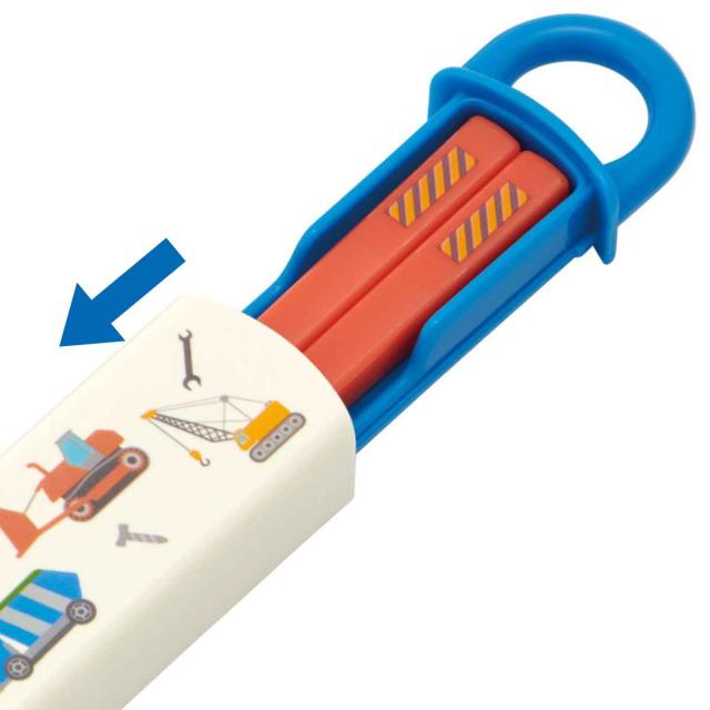 ●はたらくクルマの開けやすいスライド式箸箱と箸のセットです。