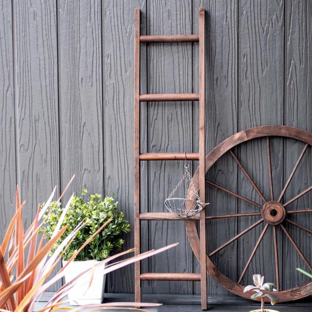 オーナメント ウッド・ラダー ( ガーデニング雑貨 はしご 木製 ウッドラダー 98×23cm 園芸 エクステリア 雑貨 飾り ガーデンオーナメント ホイール 庭 ベランダ ガーデニング インテリア ディスプレイ 壁掛け おしゃれ )