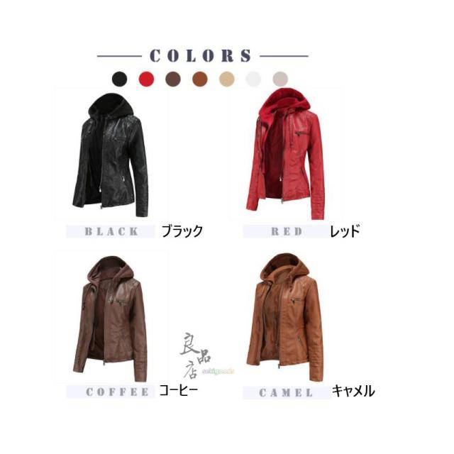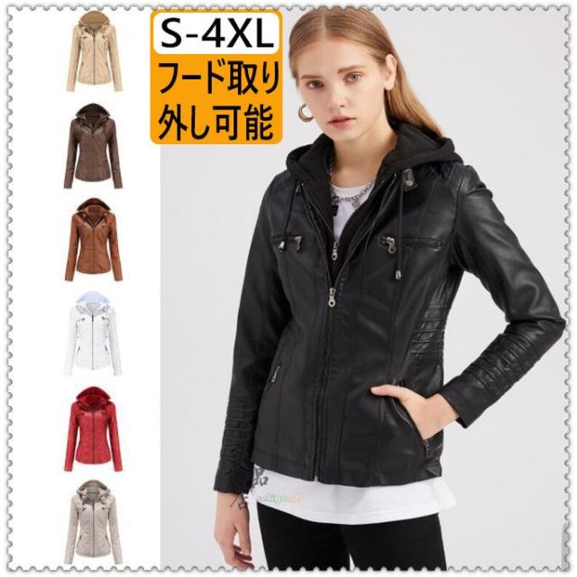 革ジャン レディース レザージャケット ライダース 冬 フード付き おしゃれ コーデ バイクジャケット 大きいサイズ 人気 コーデ 暖かい 赤