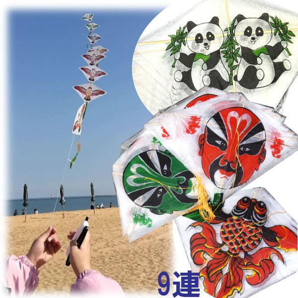 【糸付属】中国紙連凧9連 ネコポス便なら【送料無料】 |チャイナ,タコ,たこ,中華街,レトロ,雑貨,お土産,ギフト,誕生日,プレゼント,グッズ,チャイナカイト ro1211