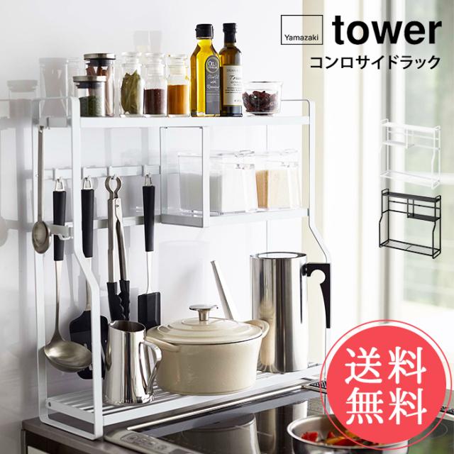 送料無料 山崎実業 tower タワー コンロサイドラック【キッチン収納 隙間 隙間収納 収納 コンロ 壁際 台 ラック コンロラック 調味料ラック スパイスラック キッチンラック 大容量 インテリア おしゃれ シンプル 白 黒 ホワイト ブラック 便利 北欧】