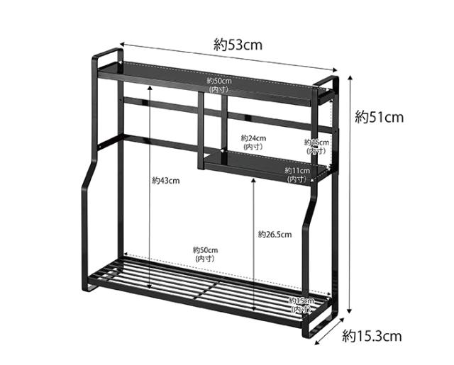 本体 幅:53cm 奥行:15.3cm 高さ:51cm / 内寸 幅:50cm 奥行:15cm 高さ:43cm / 中棚内寸 幅:24cm 奥行:11cm 高さ:15cm