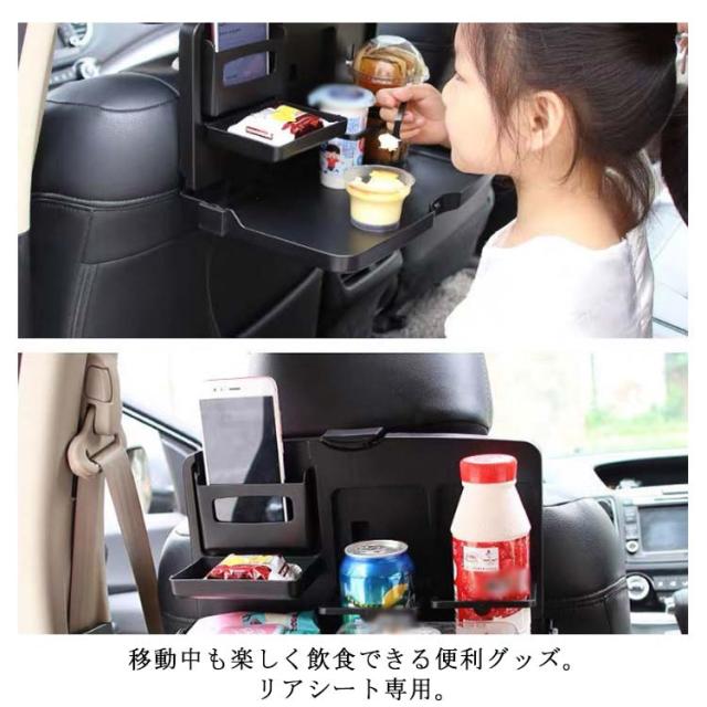 車 車載トレー スマホ トレイ リアトレイ シートトレイ 便利 ポケット 小物 食事 テーブル 飲み物 テーブルトレイ 缶 リアシートトレイ 収納 超便利なリアシート用トレイ! コンパクト 車載用 汎用 車内 折りたたみ 簡易テーブル