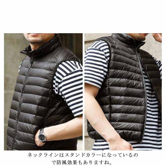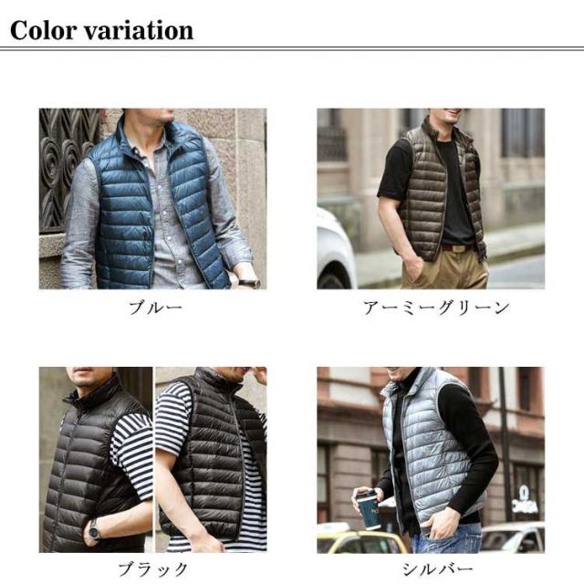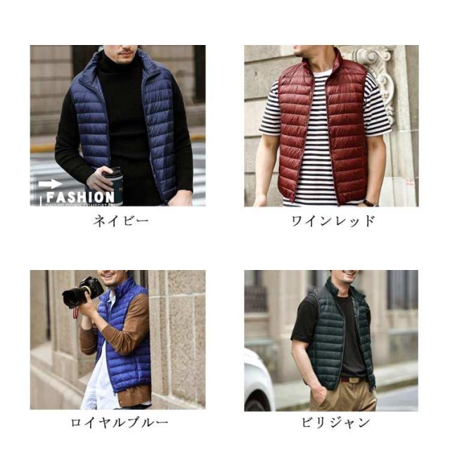 トップス 軽量 ライトダウンベスト 【送料無料】メンズ 秋冬 アウター 防寒 インナーダウン S~4L 無地 コンパクト ファスナー インナーダウンベスト 保温 ハイネック 大きいサイズ 紺 40代 30代 50代 20代 ネイビー ショート