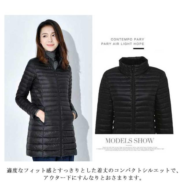 レディース コンパクト ジャケット コート ネイビー 軽量 ダウン 秋冬 ロング あったか ハイネック 長袖 ライトダウン 【送料無料】インナーダウン 防寒 保温 暖かい 50代 40代 30代 50代 20代 ブラック ベージュ アウター
