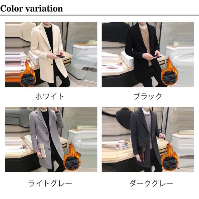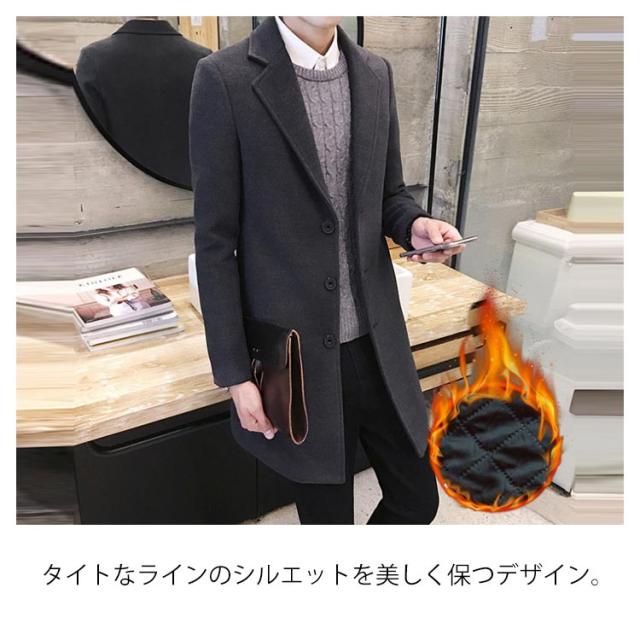 | 厚手のインナーやスーツの上からでも羽織れる最強着回しコート。 スリムフィットタイプで、着るだけでスタイルUP! タイトなラインのシルエットを美しく保つデザイン。 肌ざわりの優しい素材が気持ちよく、着心地もバツグンの暖かいロングコートです! 普段着としてはもちろん、ビジネスコートとしてもオススメ! | |