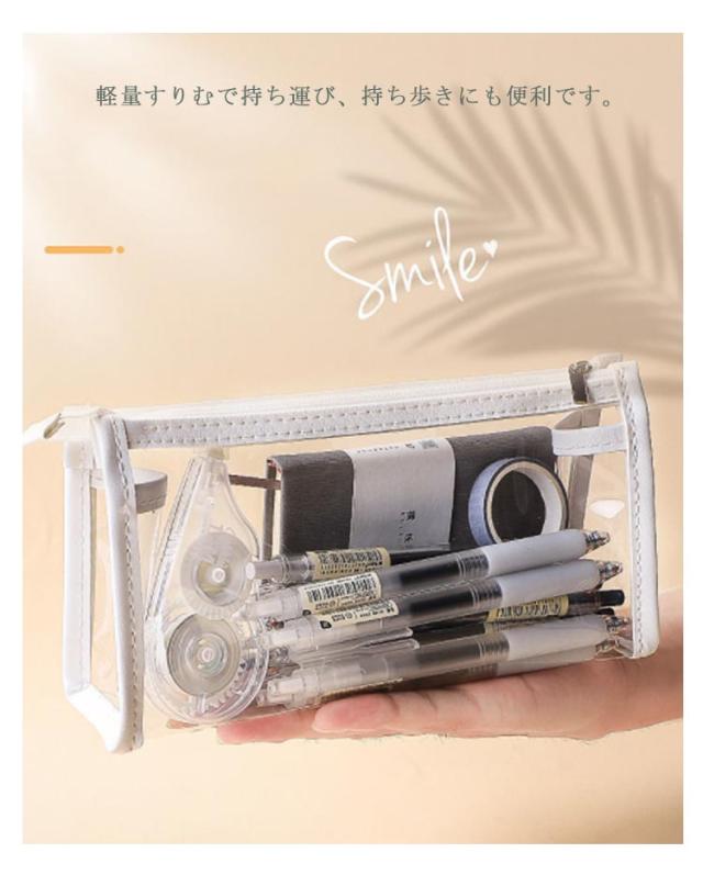 | 全5色シンプルでお洒落!かわいい透明ペンケース! 透明度の高いクリアーな素材で、中身がハッキリと際立って見える! 軽量すりむで持ち運び、持ち歩きにも便利です。 ペン入れだけでなく、メガネや小物などの小物入れ、文具ケースとして使えるので多機能です。 ペン入れだけでなく、メガネや小物などの小物入れ、文具ケースとして使えるので多機能です。 軽量すりむで持ち運び、持ち歩きにも便利です。 透ける筆箱なのでどこに何が入っているのか探しやすいです。 しんぷるでオシャレなデザイン構造のぺんけーすなので、男の子や女の子、小学生の子供も文房具の収納に使えます。 | |