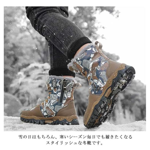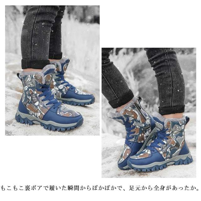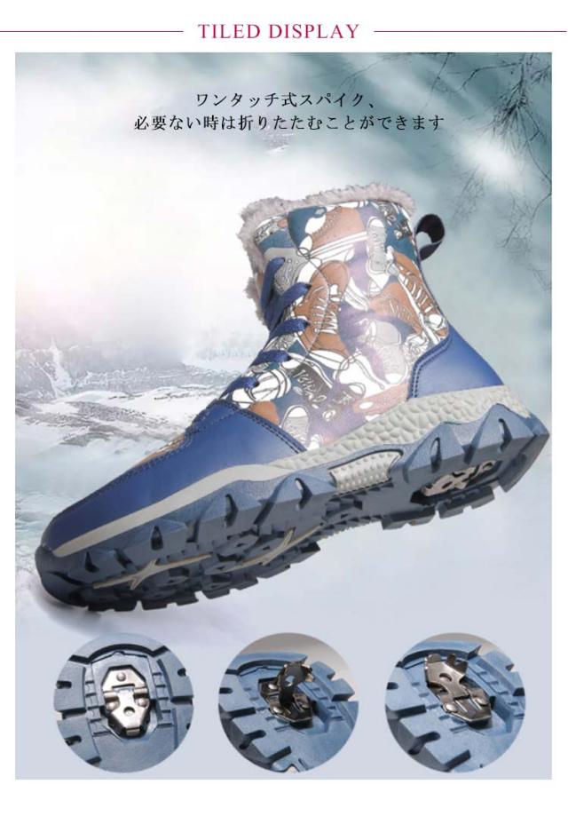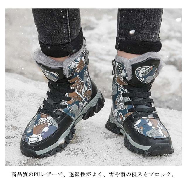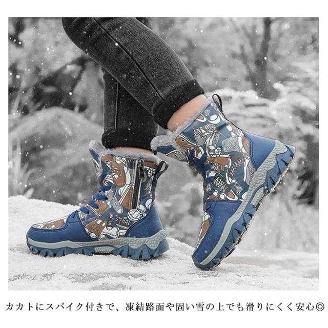 スノーブーツ 男の子 防寒 ハイカット スニーカー スパイク付き ジュニア 子供靴 防水 おしゃれ 裏ボア ハイカット キッズ 滑らない ぽかぽか 冬靴 通学 雪遊び 20-26cm