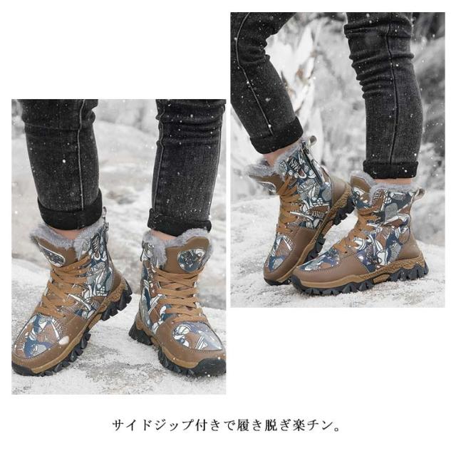 | デイリーやタウンユースにとてもおしゃれなスノーシューズ。 カカトにスパイク付きで、凍結路面や固い雪の上でも滑りにくく安心◎ もこもこ裏ボアで履いた瞬間からぽかぽかで、足元から全身があったか。 サイドジップ付きで履き脱ぎ楽チン。 高品質のPUレザーで、透湿性がよく、雪や雨の侵入をブロック。 雪の日はもちろん、寒いシーズン毎日でも履きたくなるスタイリッシュな冬靴です。 | |