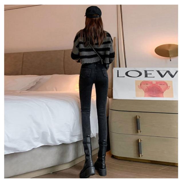 ストレッチ ウエストゴム 裏起毛と薄手2タイプ 黒 パンツ スキニーパンツ デニム ハイウエスト スキニー ロング丈 春 夏 秋 冬 秋 大人 おしゃれ シンプル グレー 大きいサイズ S-6L レディース