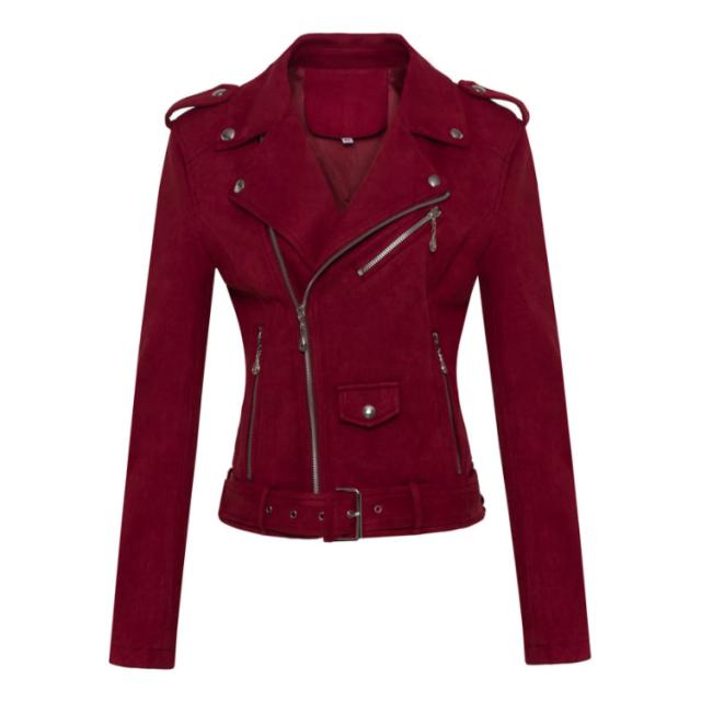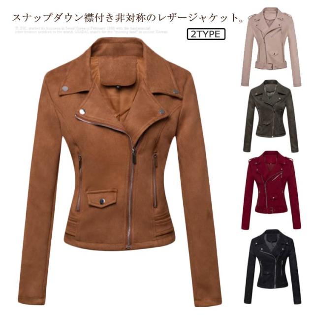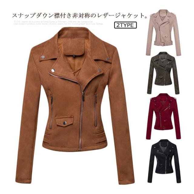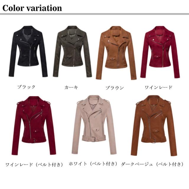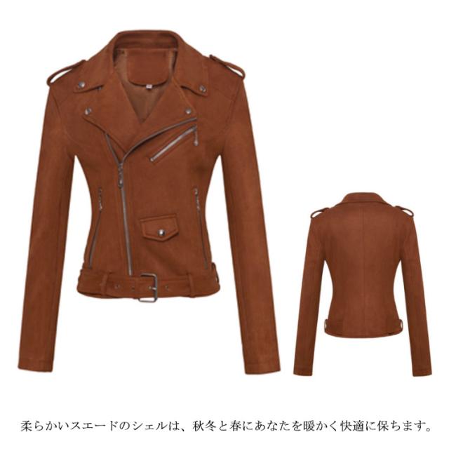 レザージャケット レディース アウター ブルゾン ライダースジャケット ベルト付き フェイクレザー スエード 革ジャン ショートコート 春 秋 冬 レディースジャケット 着回し