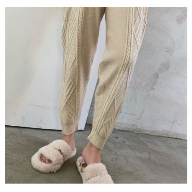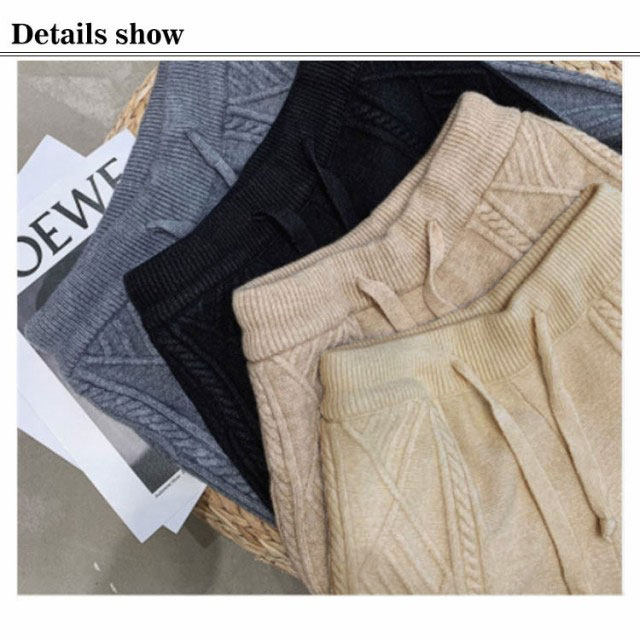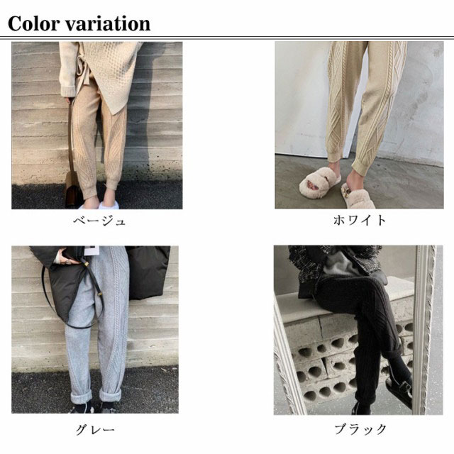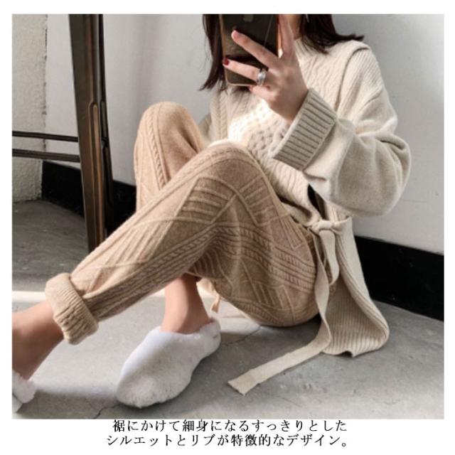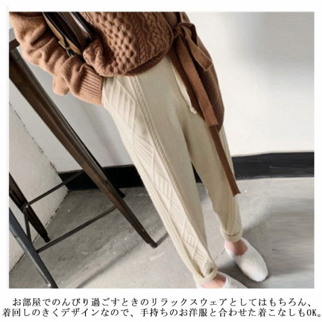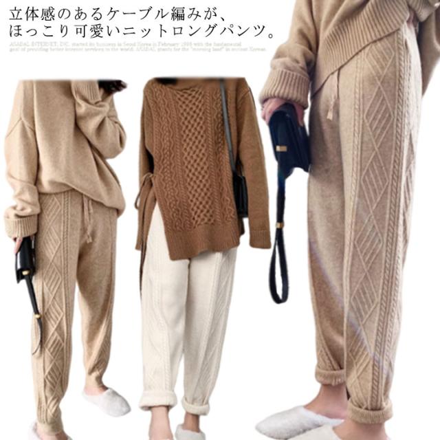ニットパンツ レディース 秋冬 ケーブル編みニット テーパードパンツ ニット パンツ ロングパンツ ボトムス ジョガーパンツ カジュアル シンプル リラックス イージーパンツ ウエストゴム レディース