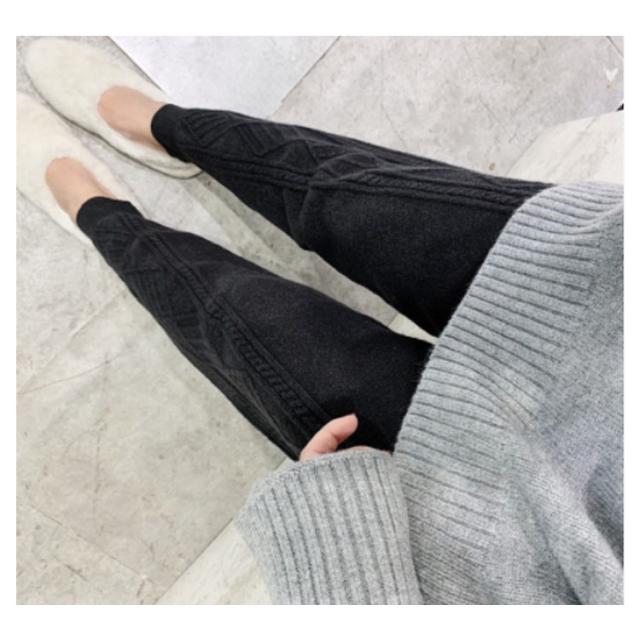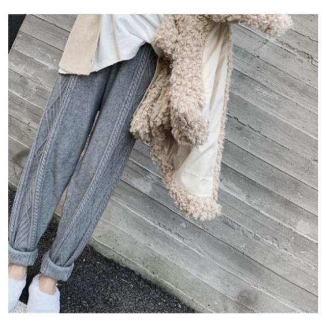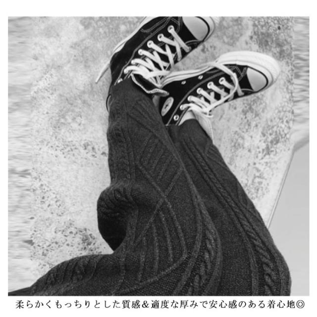 | 立体感のあるケーブル編みが、ほっこり可愛いニットロングパンツ。 柔らかくもっちりとした質感&適度な厚みで安心感のある着心地◎ お部屋でのんびり過ごすときのリラックスウェアとしてはもちろん、着回しのきくデザインなので、手持ちのお洋服と合わせた着こなしもOK。 裾にかけて細身になるすっきりとしたシルエットとリブが特徴的なデザイン。 動きやすく快適な穿き心地のパンツは、デイリーから冬のアクティブシーンまで幅広く活用するひと品です。 | |