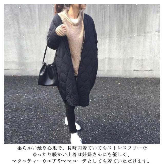 | カジュアルにもきれいめにも着られるノーカラーキルティングコート。 シンプルなデザインで首回りのコーデを邪魔しないノーカラーとスムーズな足捌きとデザイン性を兼ねたラウンドスリットはトレンドライクな1着に◎ 長めの丈でおしりも隠れるので、体型カバーにも◎ 軽い着心地でさっと羽織れ、スタイリッシュな印象に格上げしてくれます。 柔らかい触り心地で、長時間着ていてもストレスフリーな ゆったり暖かい上着は妊婦さんにも優しく、マタニティーウエアやママコーデとしても着ていただけます。 | |