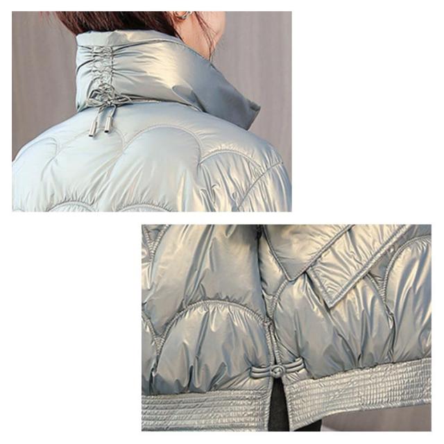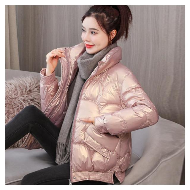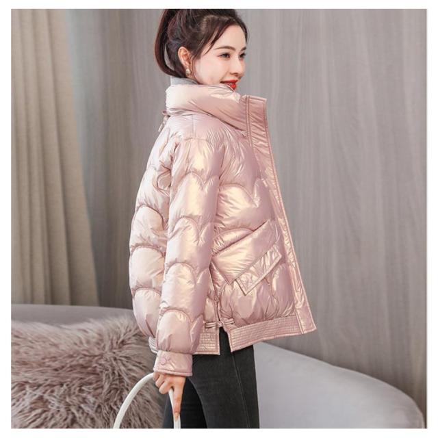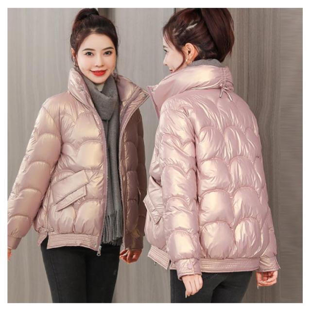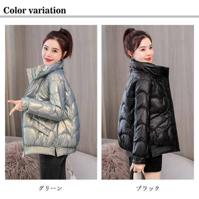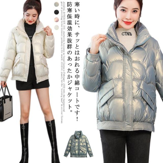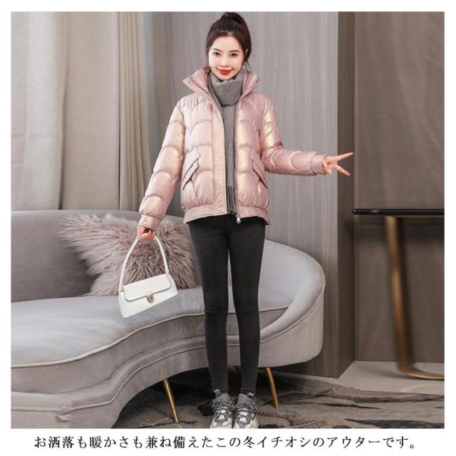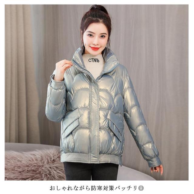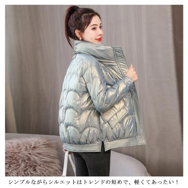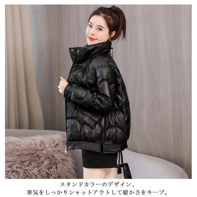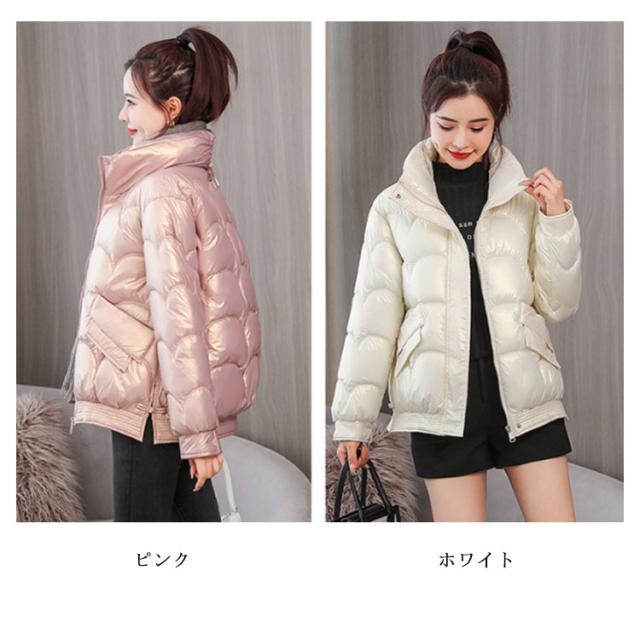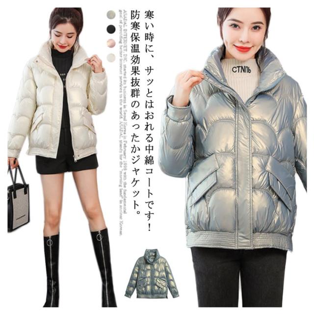 防寒 レディース 光沢 ショートコート スタンドカラー 防風 秋 防風 女性 冬アウター 暖かい コート ジャケット ショート丈 レディースコート 綿服 冬 軽量 無地 ダウンジャケット ゆったり 厚手 アウター ポケット付き 中綿コート