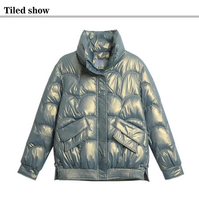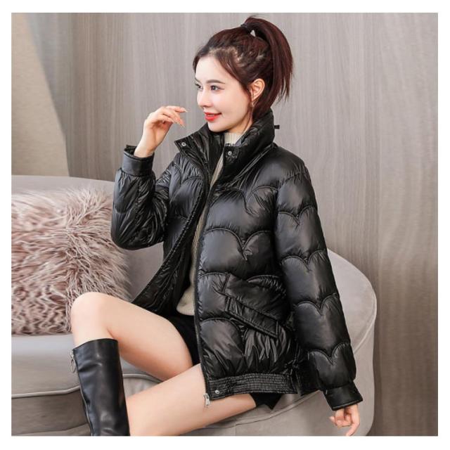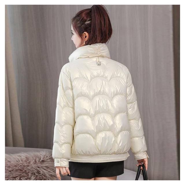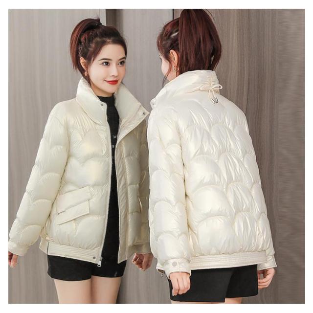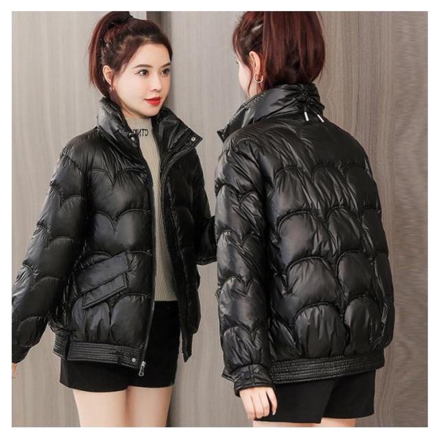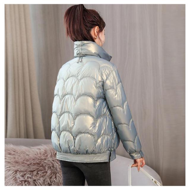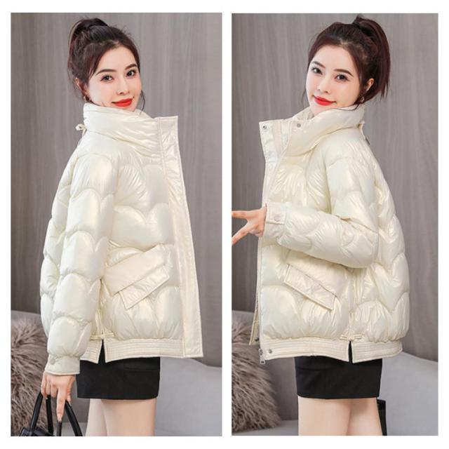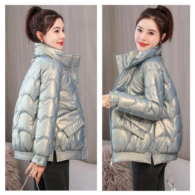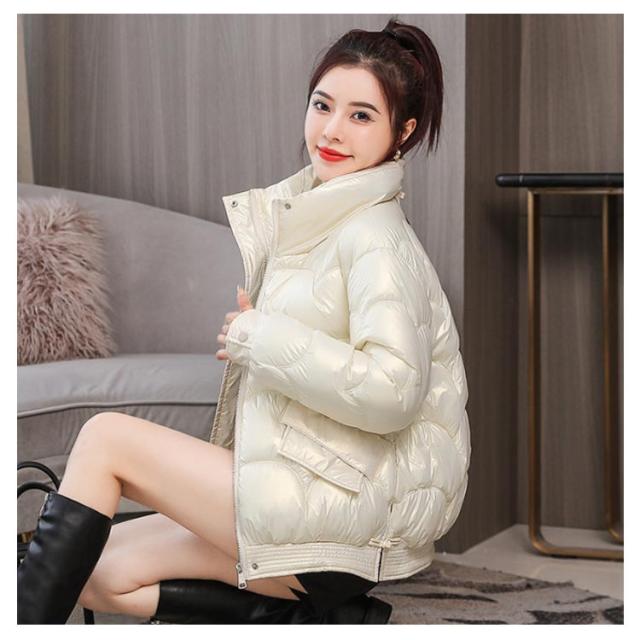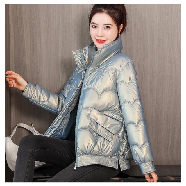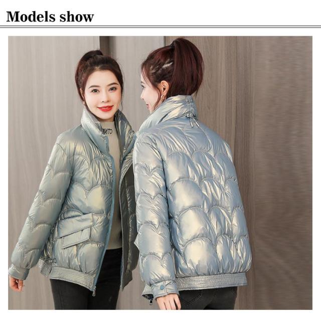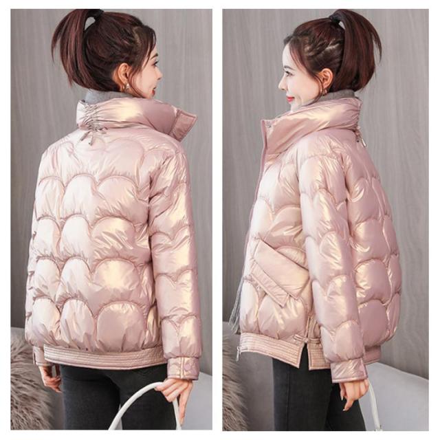 防寒 レディース 光沢 ショートコート スタンドカラー 防風 秋 防風 女性 冬アウター 暖かい コート ジャケット ショート丈 レディースコート 綿服 冬 軽量 無地 ダウンジャケット ゆったり 厚手 アウター ポケット付き 中綿コート
