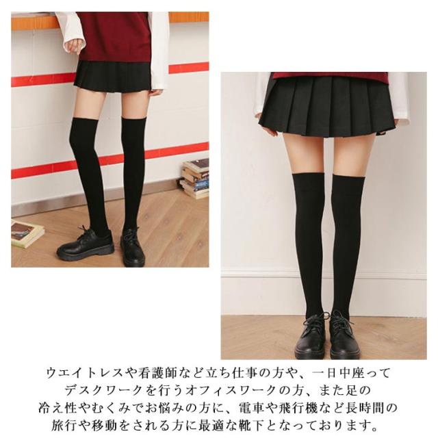 [着圧2足セット] ニーハイソックス ハイソックス 靴下 レディース 秋冬 着圧 ソックス 厚手 防寒 ニーハイ 着圧ソックス 着圧靴下 白 黒 着圧ハイソックス オーバーニー 美脚 オーバーニーソックス 暖かい 無地