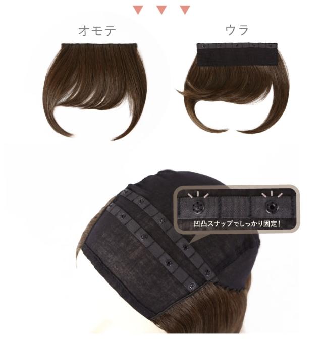 前髪はスナップボタンで取り外し可能です。