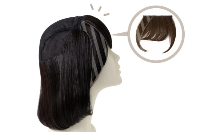 前髪は取り外し可能(スナップボタン)/取り付け位置は2段階