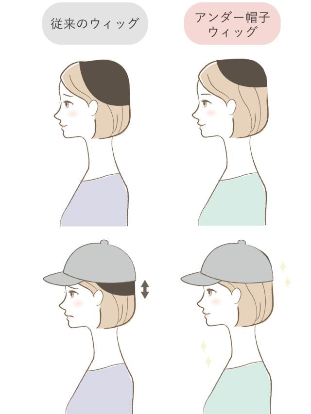 アンダー型の帽子ウィッグ