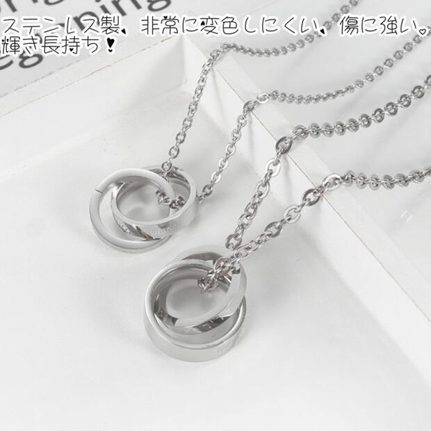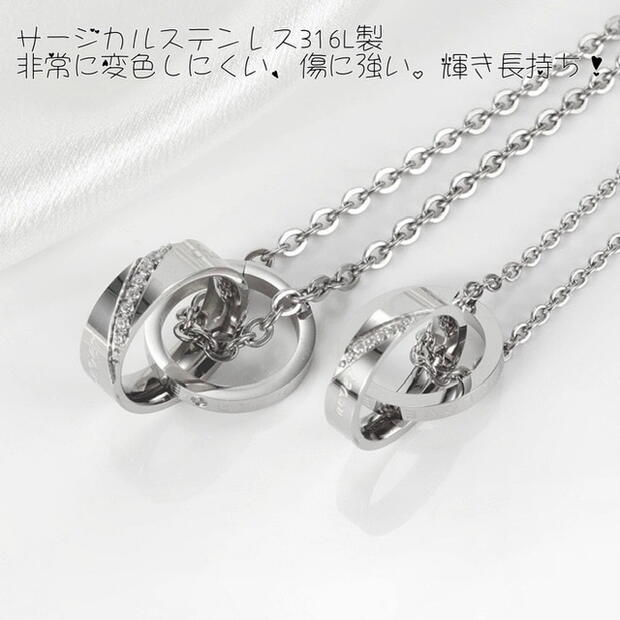 ペアネックレス2本セット サージカルステンレス ペアネックレス 金属アレルギー ジルコニア2連リングネックレス 永遠の愛 お揃いカップル ステンレス ネックレス チェーン シルバー おそろ おそろい メンズネックレス レディースネックレス リング カジュアル プレゼント