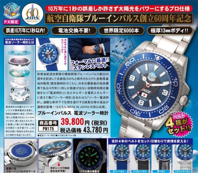 ブルーインパルス創設60周年記念「ブルーインパルス電波ソーラー時計」 (航空自衛隊 PX限定 メンズ ウォッチ 男性 ベルト4本付き)