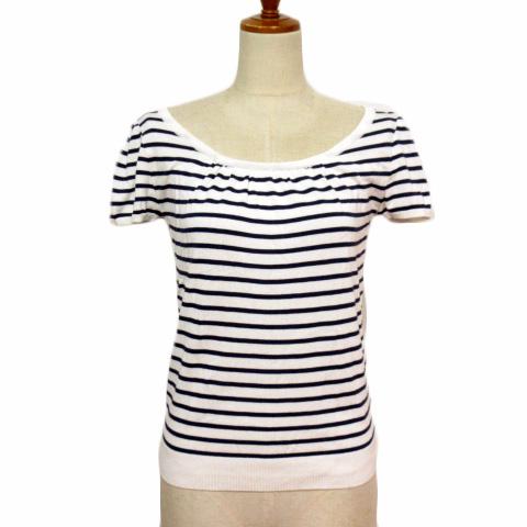 【中古】アンタイトル UNTITLED カットソー ニット ボーダー 半袖 レーヨン 0 白 ホワイト レディース
