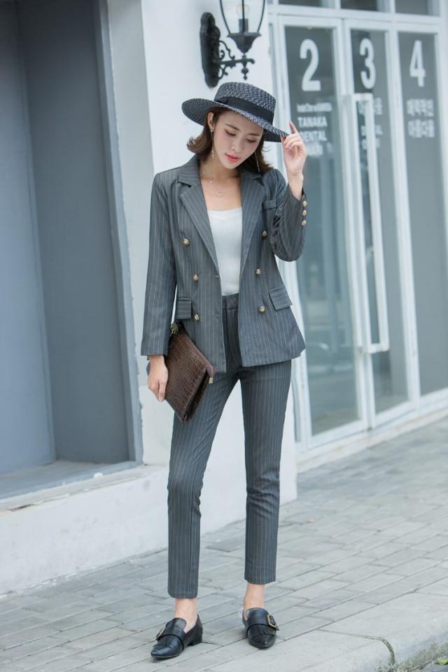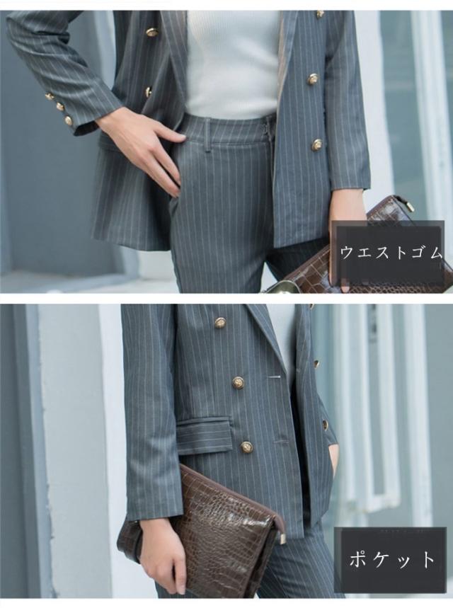 パンツスーツ ストライプ柄 セレモニースーツ フォーマル 2点セット スーツ 事務服 リクルートスーツ レディース 通勤 入学式 七五三