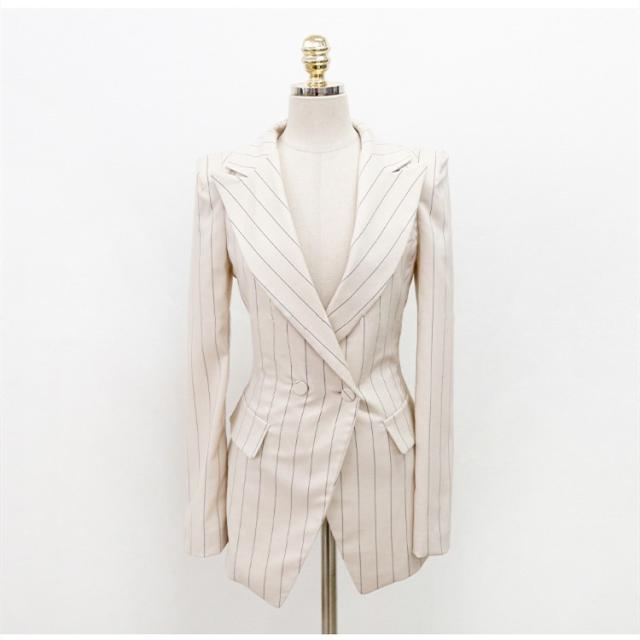 ワンピーススーツ セットアップ ストライプ柄 テーラードジャケット ママスーツ 母 卒業式 セレモニースーツ 2点セット フォーマル 通勤 ジャケット
