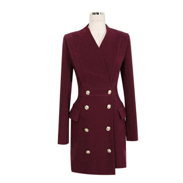 タイトワンピース 長袖 ワンピーススーツ Vネック ミニ丈 ワンピース ダブルボタン 通勤 フォーマル レディース 春秋 フェミニン エレガント 発表会 披露宴