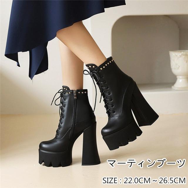 ブーツ マーティンブーツ 秋冬 レディース ショートブーツ 厚底 編み上げブーツ レースアップブーツ 太ヒール チャンキーヒール シューズ 通勤 オフィス