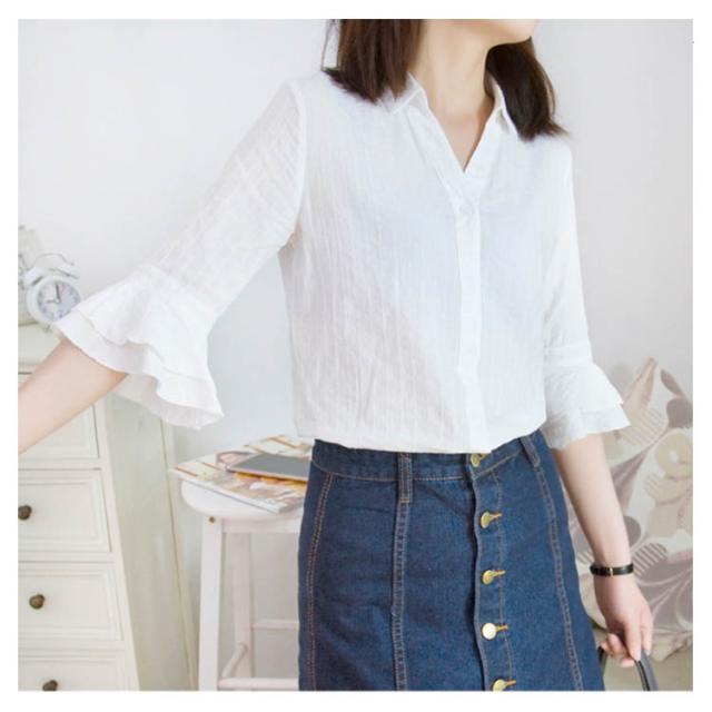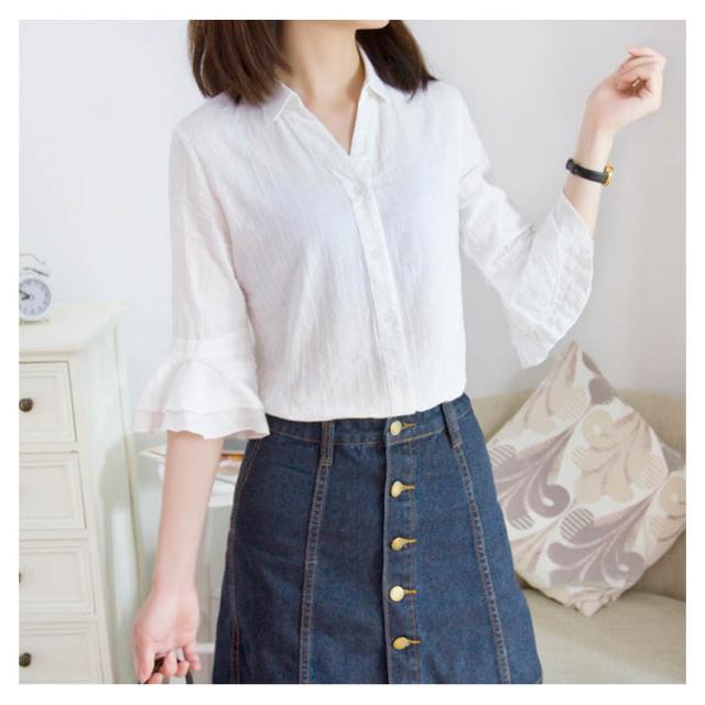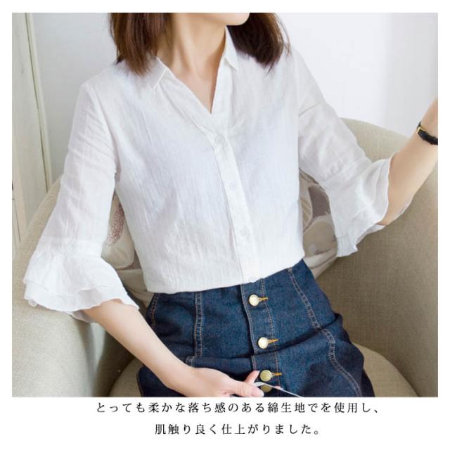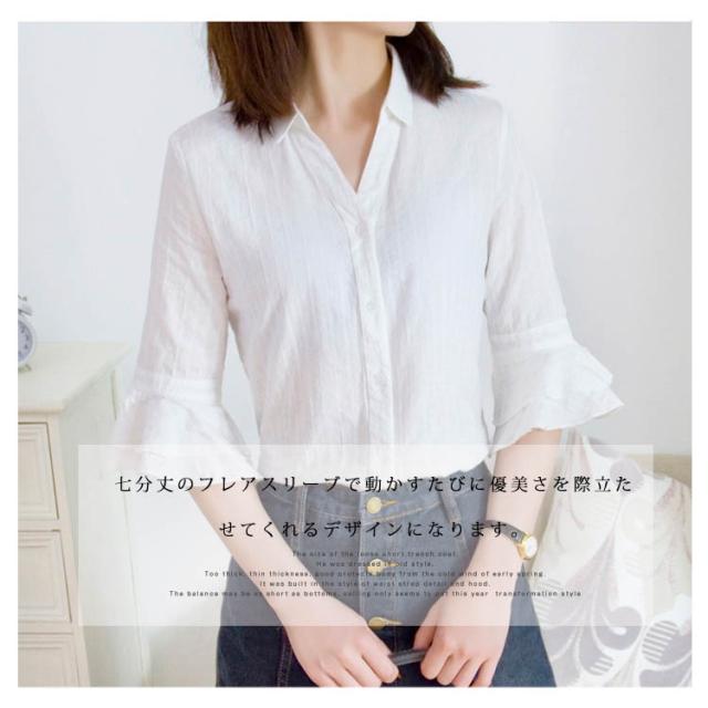 レディースシャツ 七分袖 シャツ ブラウス 綿 ナチュラふ服 大人 女性 夏