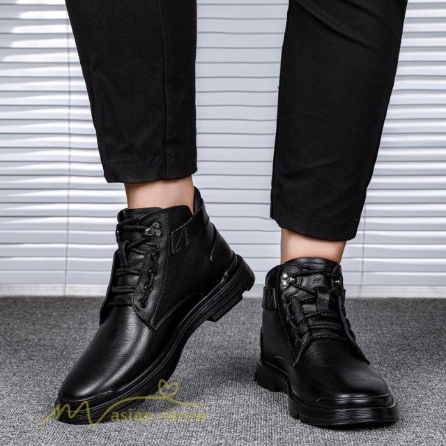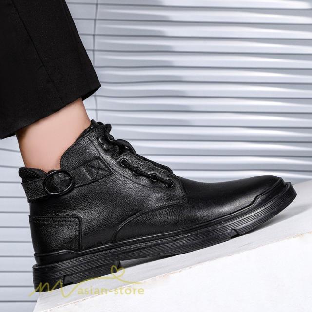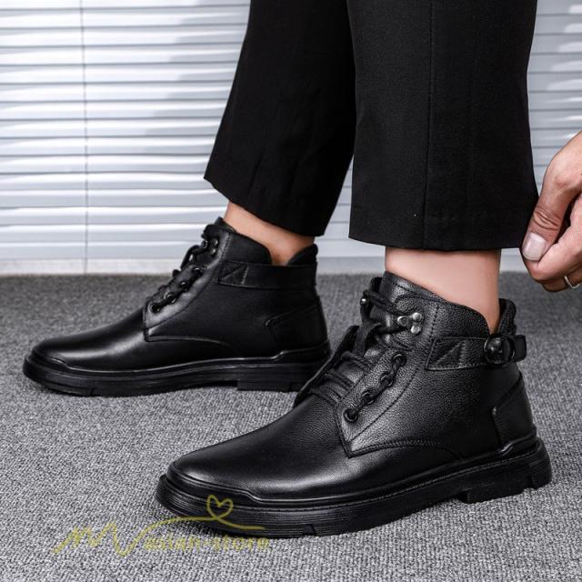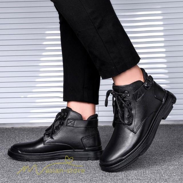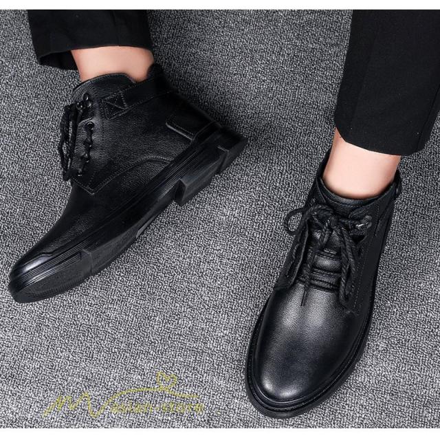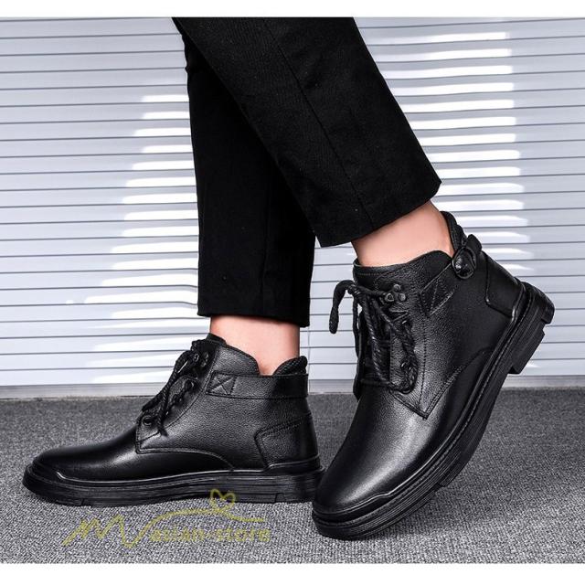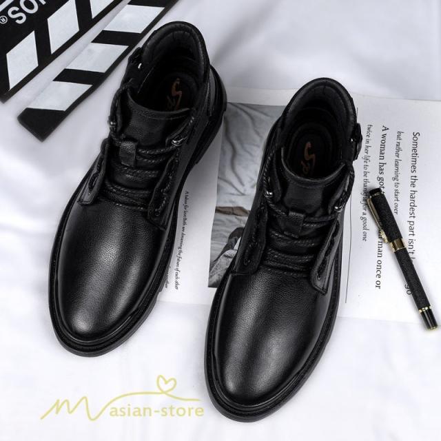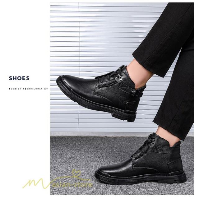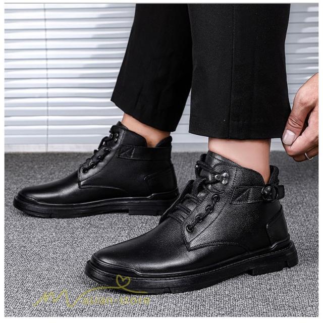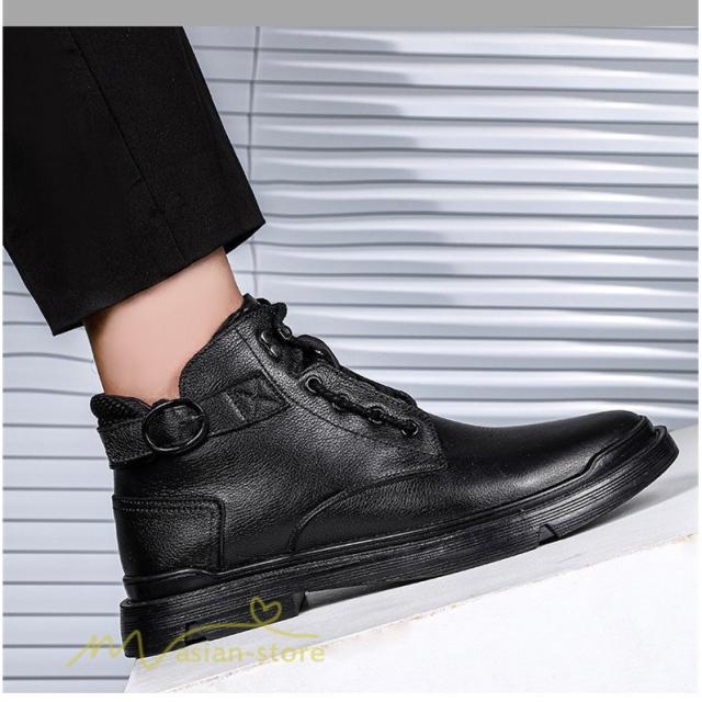 ビジネスシューズ メンズ 裏起毛 暖か 保温 紳士靴 ハイカット シューズ 革靴 カジュアル 日常感 定番 プレーントゥ フォーマル オフィス メンズシューズ 柔らか