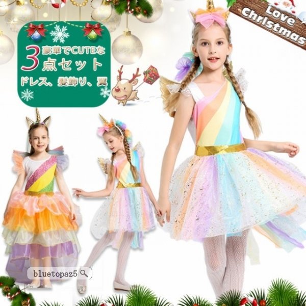 子供 ユニコーン コスチュームドレス コスプレ ワンピース 女の子 キッズ パーティードレス こどもの日 衣装 Christmas特集 クリスマス 誕