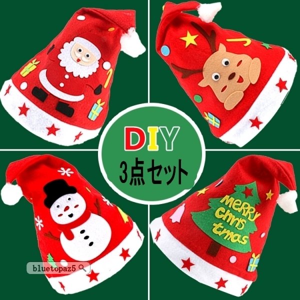 クリスマス 子供 コスプレ サンタ帽子 DIY 手作り 3枚セット サンタガール かわいい セットアップ 可愛い