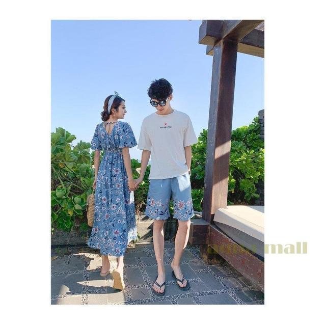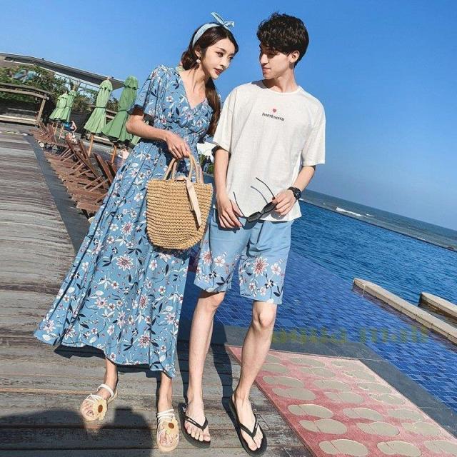 カップル ペアtシャツ 半袖 ペアルック お揃い 服 夏 花柄 パンツ 韓国ファッション デート おでかけコーデ おそろ オルチャンファッション