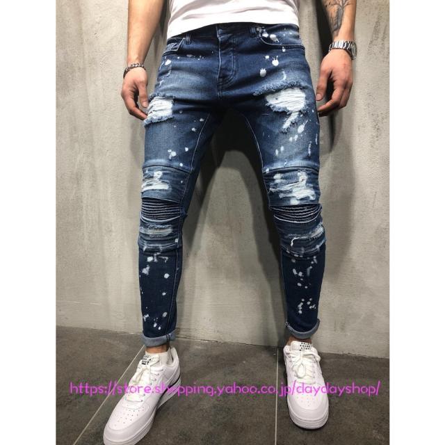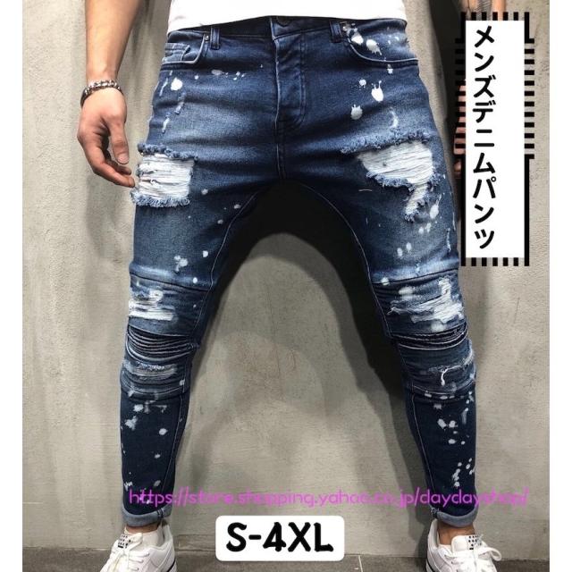 スキニーパンツ クラッシュスキニーデニム メンズ ダメージ ジーンズ ジーパン Gパン ボトムス 細身 伸縮性 スリム ストリート 欧米風 個性的 綿 大きいサイズ