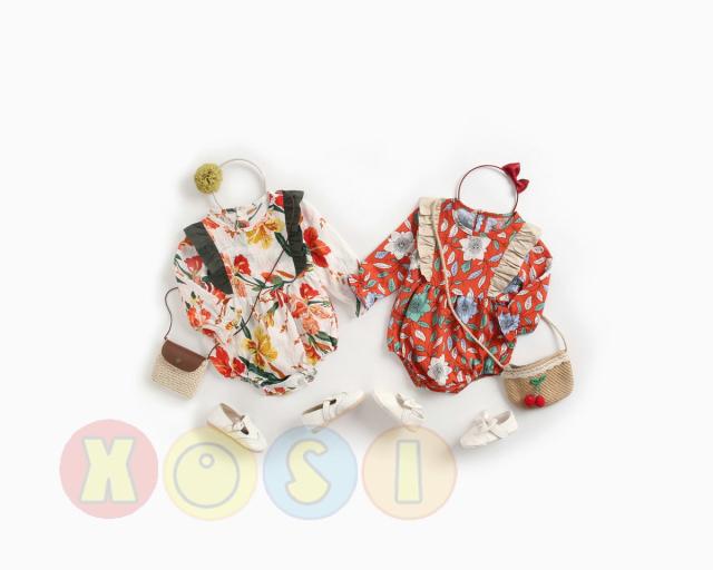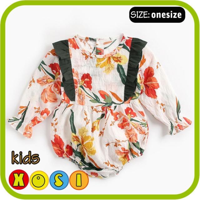 ベビーロンパース オールインワン 春秋 花柄 長袖 ベビー服 赤ちゃん服 可愛い 女の子 ロンパース 韓国子供服